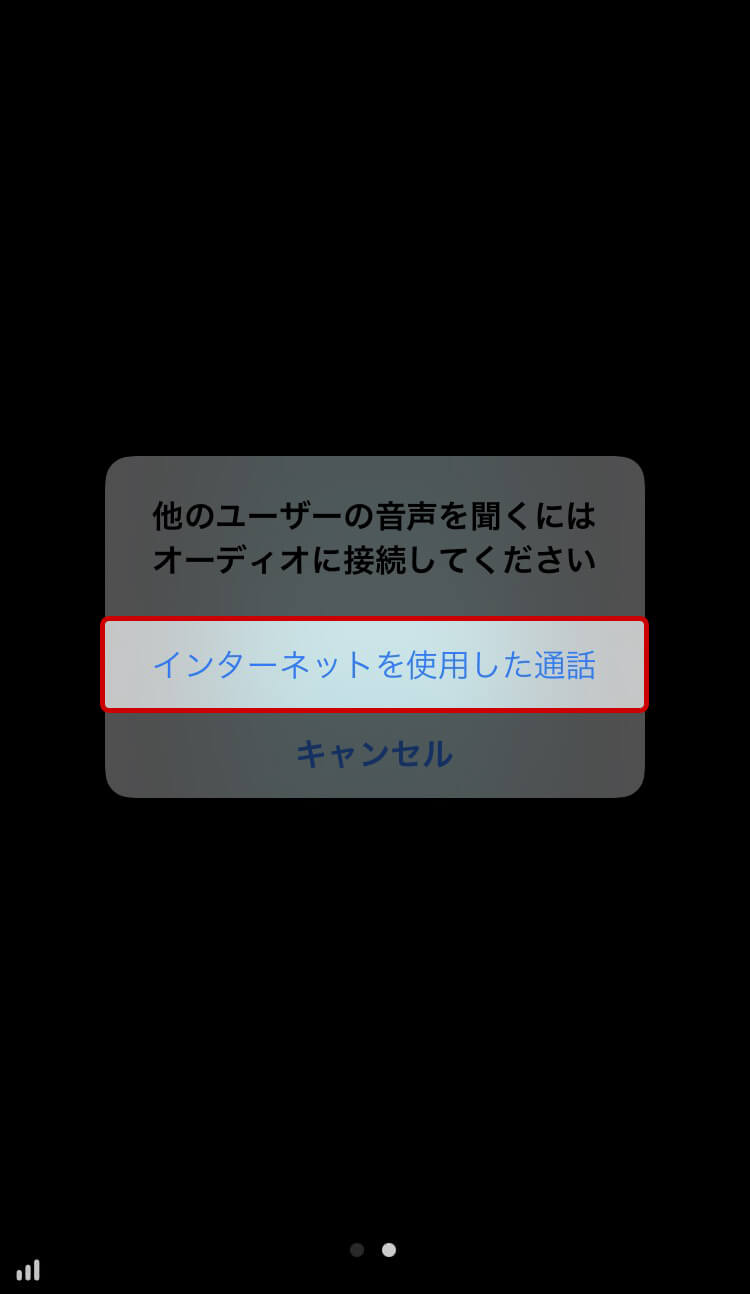 「他のユーザーの音声を聞くにはオーディオに接続してください」と表示されたら「インターネットを使用した通話」を選択してください。 また「入室許可」が表示された場合はそのまましばらくお待ちください。 -